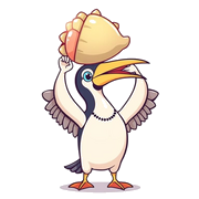 Download and display this funny digital art print of a triumphant cormorant holding its colorful shell. Instant coastal charm.